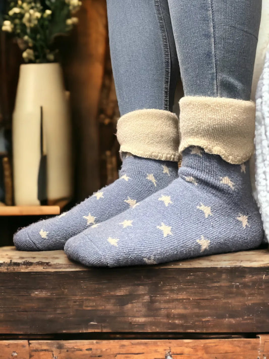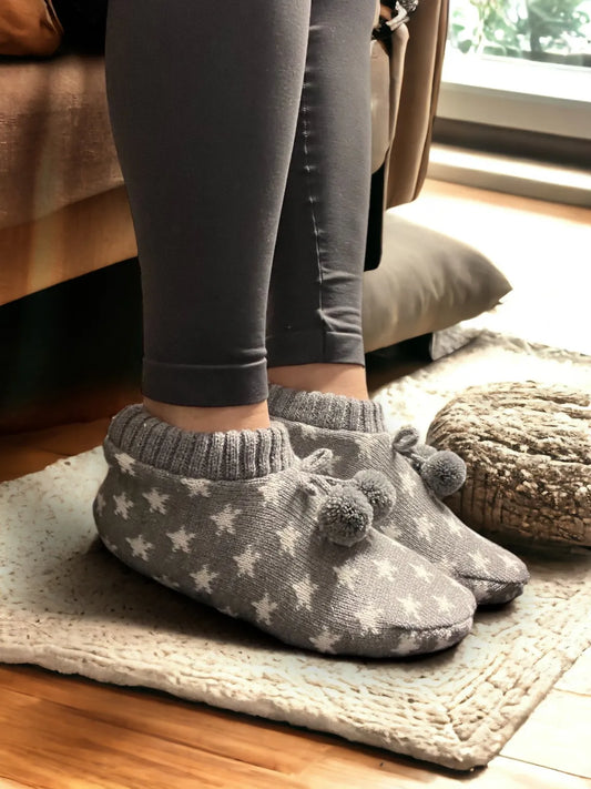 Jess & Lou Shining Stars Grey Super Cosy Slippers