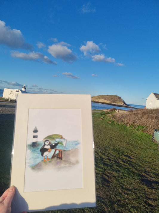 Puffin Prints “Paintin’ Puffin” Mounted A4 Print