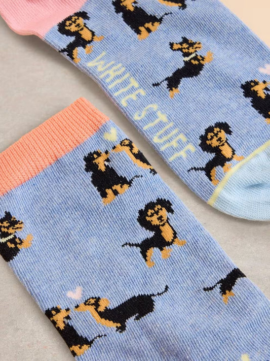 White Stuff Fluffy Sausage Dog Ankle Socks