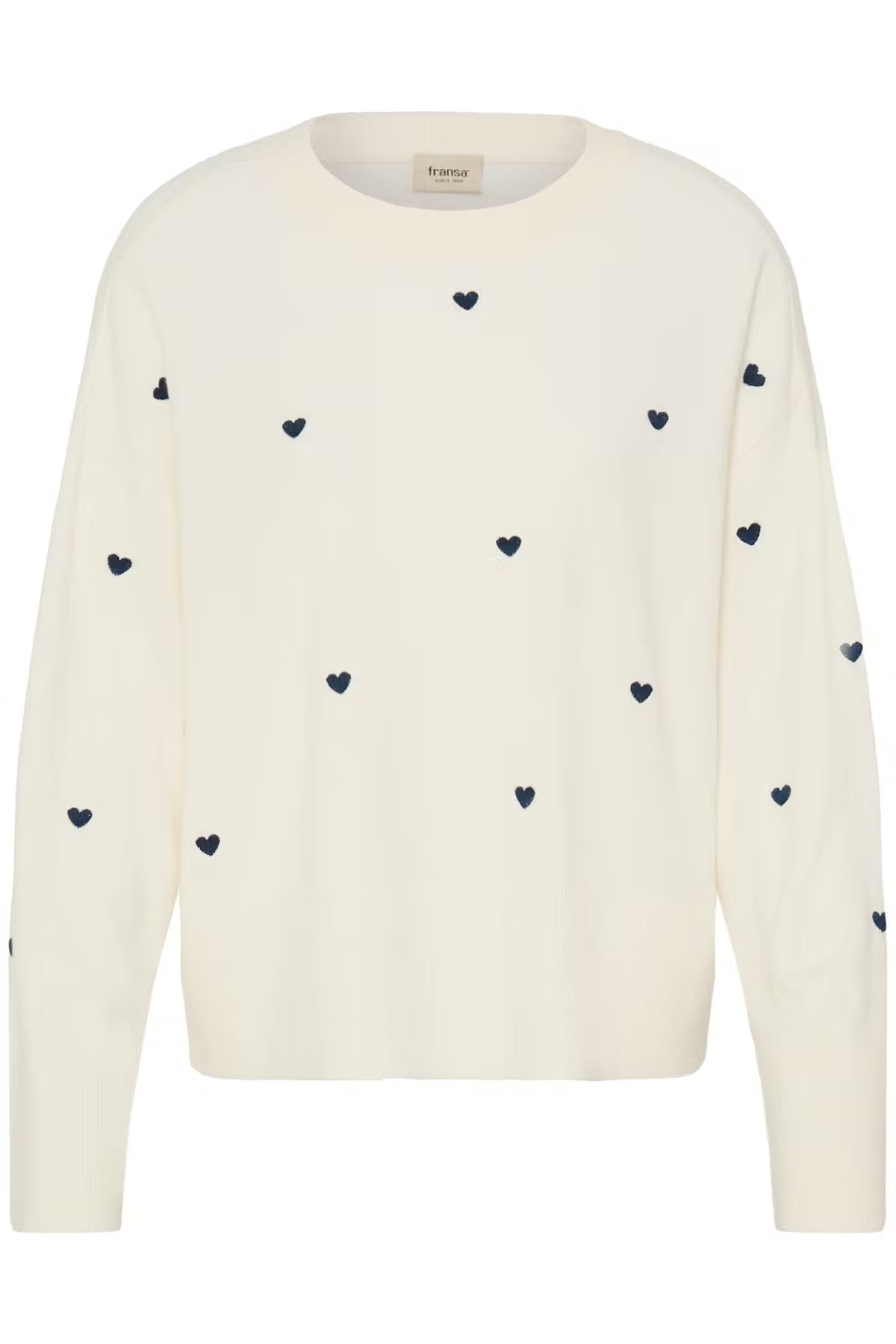 Stay effortlessly stylish with the Fransa FRMelani Pullover. This casual sweater features a classic round neck and long sleeves, making it perfect for layering or wearing on its own. The lovely heart pattern adds a touch of visual interest without overwhelming your look. Designed with a regular fit, it offers comfortable wear throughout the day without feeling too tight or loose. Crafted by Fransa, known for quality and contemporary designs, this jumper is an ideal choice for casual outings or relaxed weekends. Pair it with jeans or chinos for a laid-back yet polished outfit.