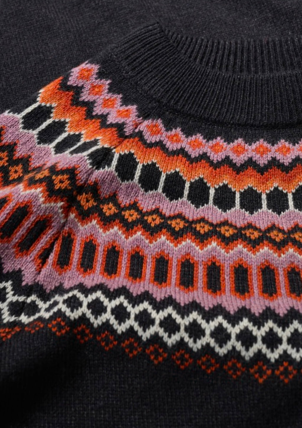 A cosy, knitted dress with a relaxed fit, made from a mix of soft organic cotton and recycled nylon. The raglan sleeves add a ripple to the wrist while the Fair Isle stitch pattern wraps around the neckline, body and shoulders for a splash of colour. Finished with a ribbed trim at the cuffs and hem, this dress drapes below the knee and is perfect for pairing with boots or layering over trousers.