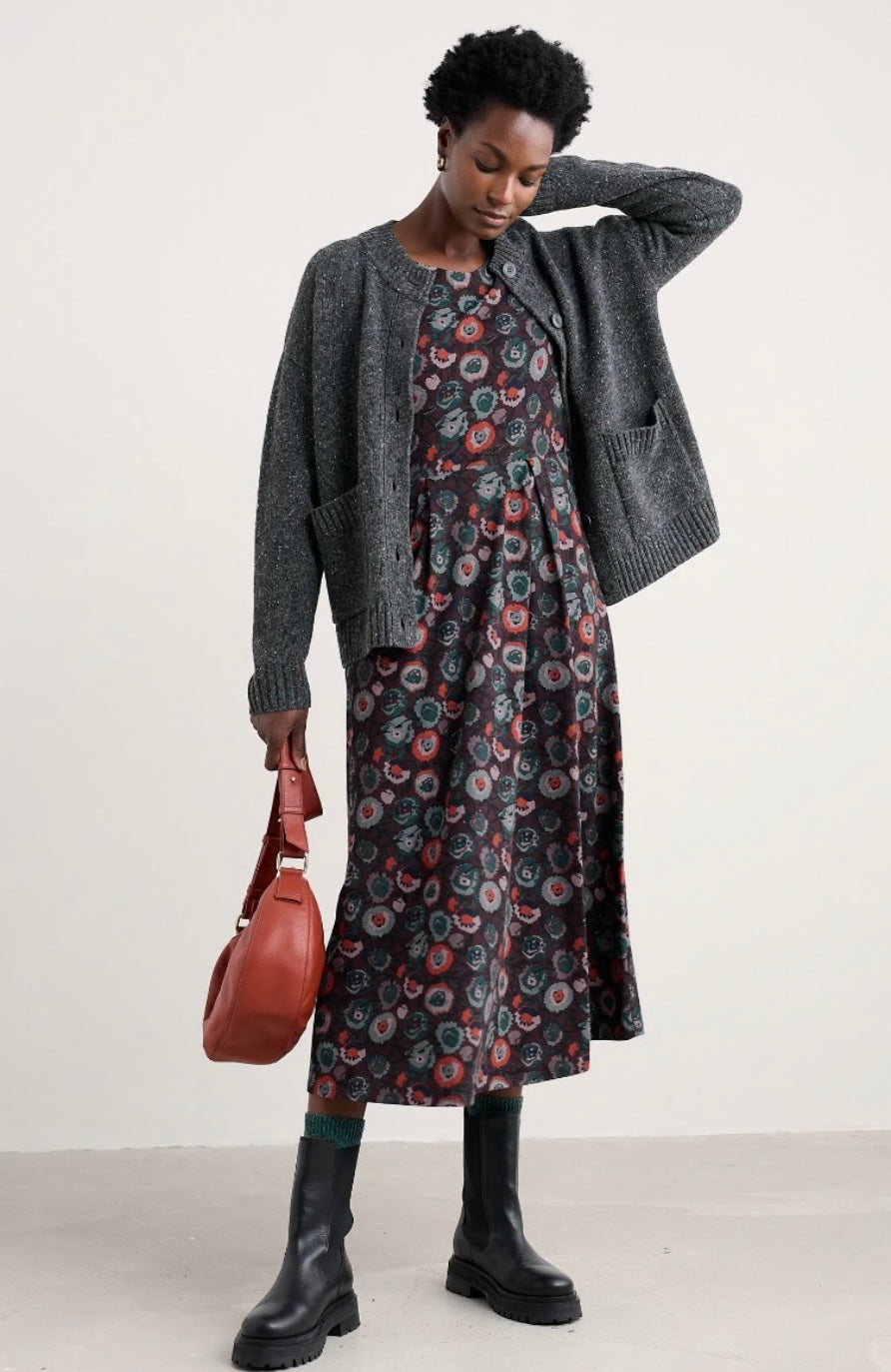 A chunky wool cardigan in a five-gauge knit, crafted for cosiness with a warm blend of RWS-certified lambswool. Seasalt have designed the Harbour Sands with dropped shoulders and ribbed cuffs for a comfortable, relaxed fit, perfect for layering in cooler seasons.